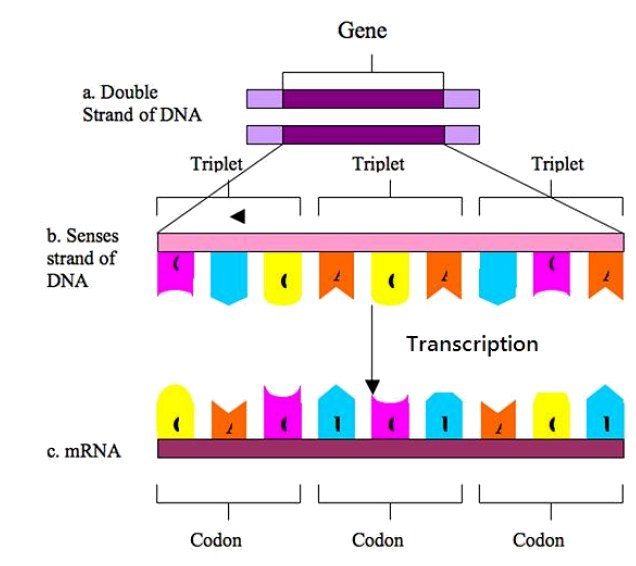 The translation process takes the information from transcription of DNA and turns it into something the cell can use. This process only works because of the way DNA is coded. DNA is coded in three nucleotide codons, each one coding for a specific amino acid, which are the building blocks of an individual protein. The below chart shows what each codon codes for.