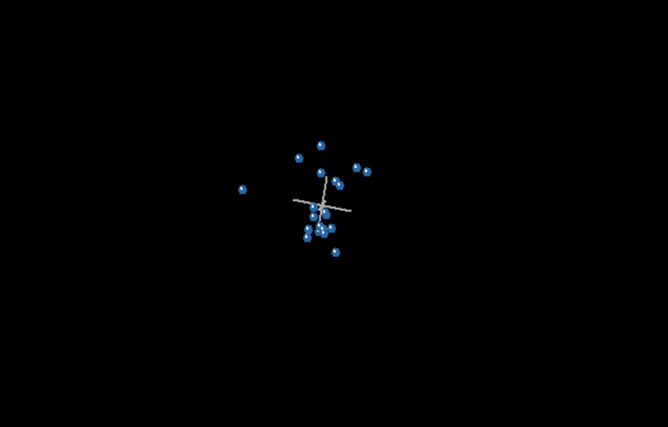 Having examined the bootstrapping values we move into the graphical displays of the values. Immediately we notice a huge difference. The BDISTMDS graphic is very similar (though not identical) to the one produced by McLain et al. My only explanation for the differences is they may have used a slightly lower taxic relevance, though this would require editing the BDISTMDS software and this is not mentioned. Even if they used a lower taxic relevance, it should be the same. However, I could overlook that were it not for BARCLAY throwing up a massively different results. Have a look below.